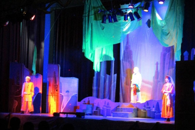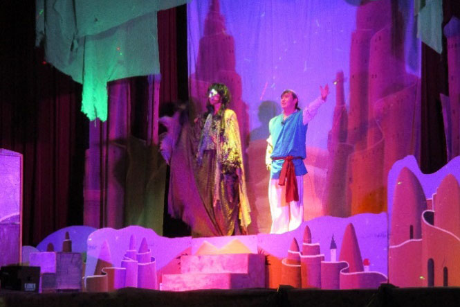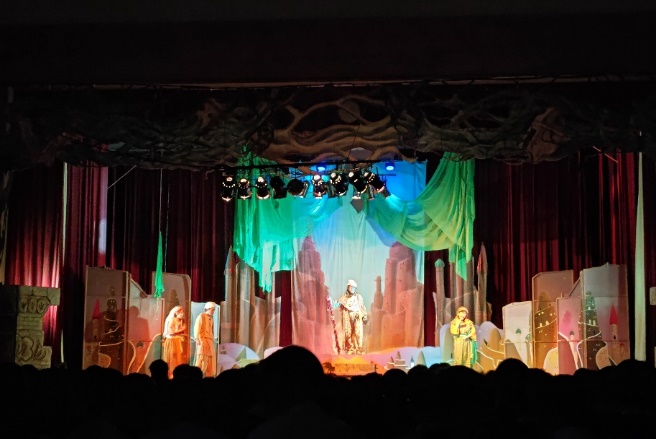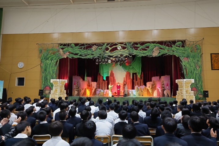 令和7年11月18日(火)、7年生から9年生は、文化庁独立行政法人日本芸術文化振興会劇団青い鳥による「正劇アラビアン・ナイト(ストレート劇 別名千夜一夜物語)を大アリーナで鑑賞しました。魔人に導かれ誠の勇気、真実の愛を知る事となる少年少女たちの物語です。信じる心、命の尊さを描いた感動の作品です。